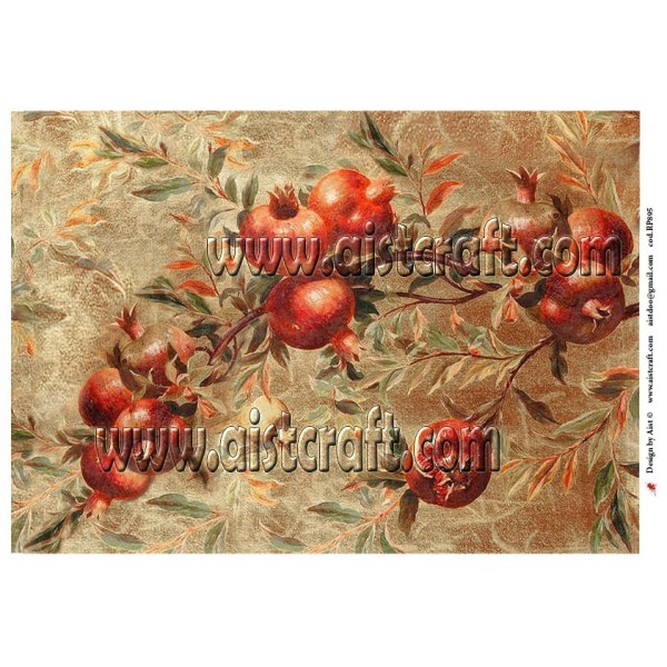 Rižev papir AistCraft © za uporabo v tehniki decoupage oz. v servietni tehniki. Zelo tanek in lahek 28 g / m2. Vsebuje jasno vidna vlakna nepravilnega profila, razporejena v vseh smereh po celotni površini papirja, kar mu daje izviren videz in strukturo. Na steklo, les, mdf, sveče ga je enostavno lepiti z lepilom za decoupage ali servietno tehniko.