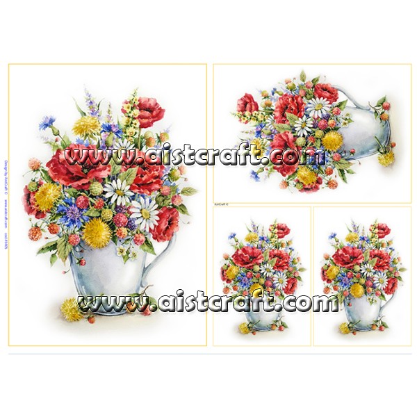 Rižev papir AistCraft © za uporabo v tehniki decoupage oz. v servietni tehniki. Zelo tanek in lahek 28 g / m2. Vsebuje jasno vidna vlakna nepravilnega profila, razporejena v vseh smereh po celotni površini papirja, kar mu daje izviren videz in strukturo. Na steklo, les, mdf, sveče ga je enostavno lepiti z lepilom za decoupage ali servietno tehniko.