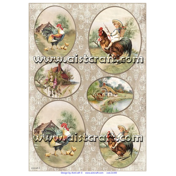Rižev papir AistCraft © za uporabo v tehniki decoupage oz. v servietni tehniki. Zelo tanek in lahek 28 g / m2. Vsebuje jasno vidna vlakna nepravilnega profila, razporejena v vseh smereh po celotni površini papirja, kar mu daje izviren videz in strukturo. Na steklo, les, mdf, sveče ga je enostavno lepiti z lepilom za decoupage ali servietno tehniko.
