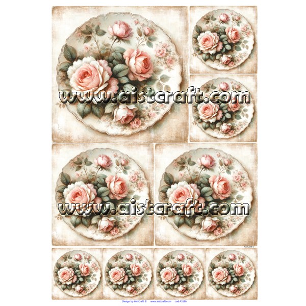 Rižev papir AistCraft © za uporabo v tehniki decoupage oz. v servietni tehniki. Zelo tanek in lahek 28 g / m2. Vsebuje jasno vidna vlakna nepravilnega profila, razporejena v vseh smereh po celotni površini papirja, kar mu daje izviren videz in strukturo. Na steklo, les, mdf, sveče ga je enostavno lepiti z lepilom za decoupage ali servietno tehniko.