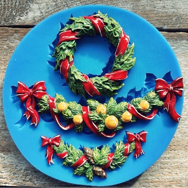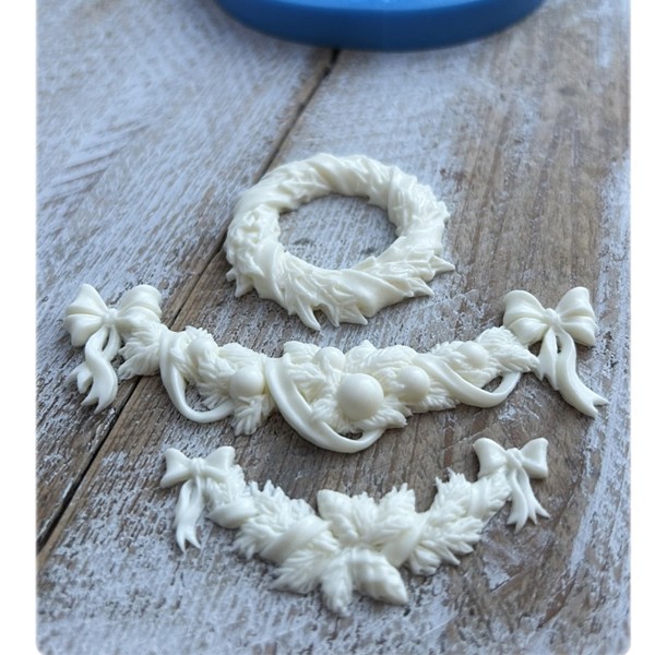 Dimenzije kalupa: premer 10,5 cm, debelina cca. 1 cmMere odlitka premer venčka 4,5 cm, debelina 0,7 cm, bordura 9,5x3,3 cm in 6x2,6 cm