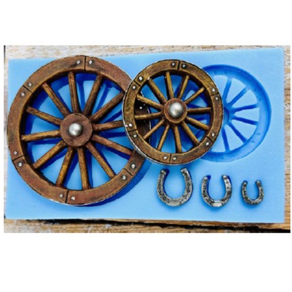 Dimenzije kalupa: 6,9 cm x 11,7 cm, debelina cca. 1,2 cmMere odlitka Kolesa 6 cm, 4 cm, debelina 1 cm, podkve 1,3- 1,5 cm